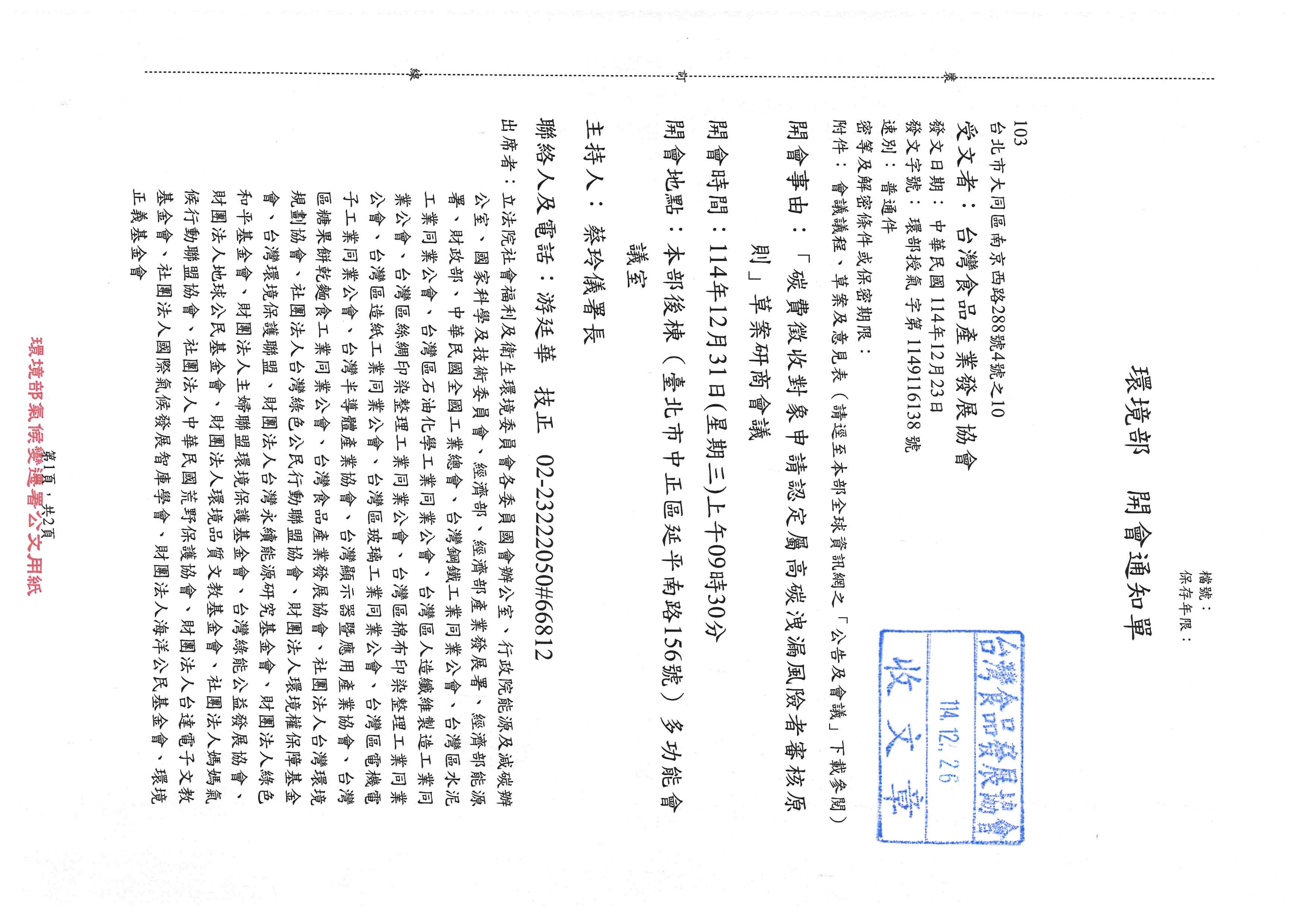 「碳費徵收對象申請認定屬高碳洩漏風險者審核原則」草案研商會議