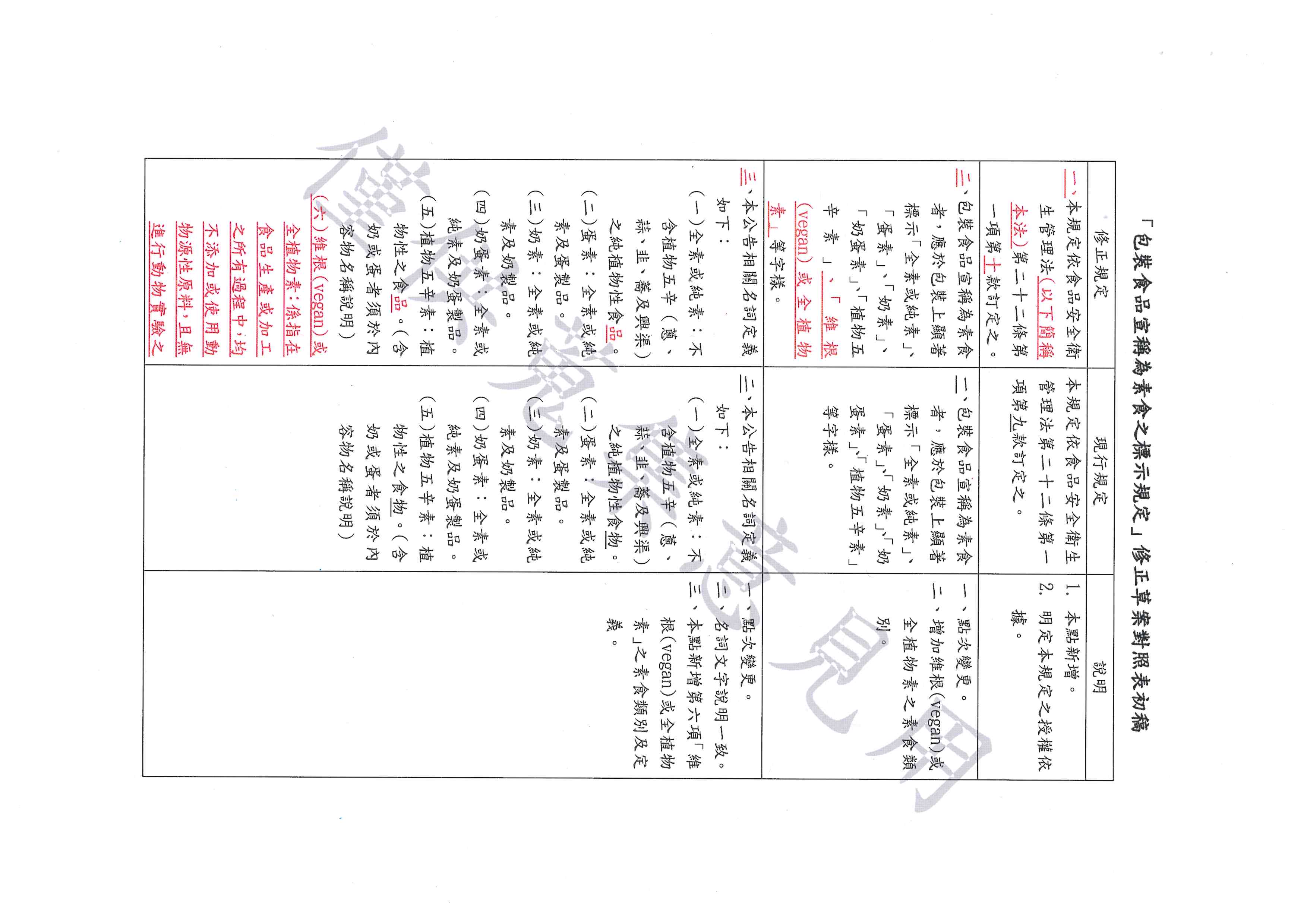發佈日期:2025-12-29 檢送「包裝食品宣稱為素食之標示規定」修正草案對照表初稿1份,敬請轉知所屬會員,如有意見,請貴單位彙整後於發文日起1週內函復,逾期視為無意見,請查照。 檔案下載區 衛授食字第1141303459號 下載 回上一頁